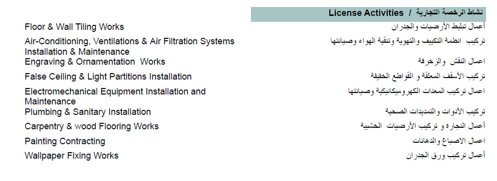 سماء العيا ن لعمال تركيب المعدات الكهروميكانيكية وصيانته ا ر شكة الشخص الواح د ذ . م . م